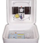 The incubator will hold 50 duck or chicken eggs or 130 quail eggs. Dimensions 18 1/2″ x 18 1/2″ x 9 1/2″